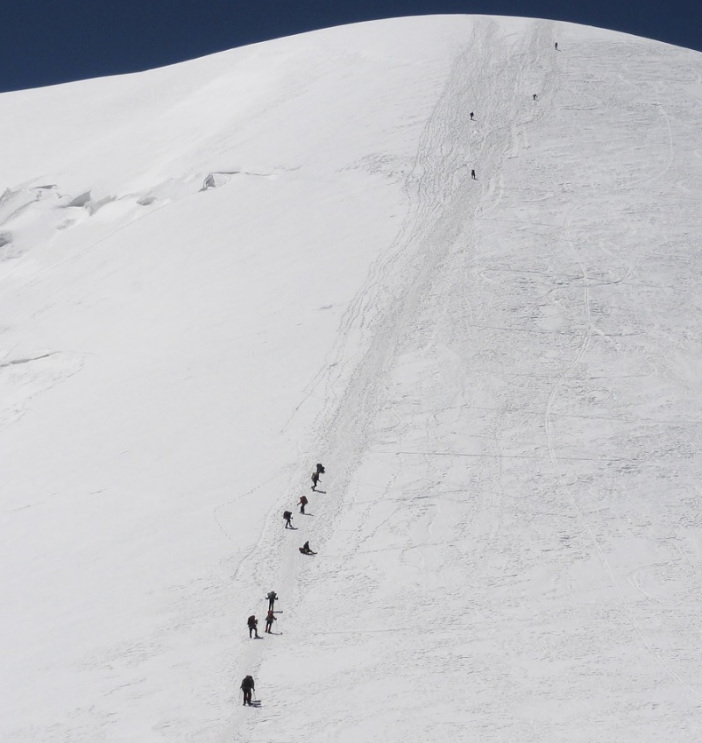 “Bıçak sırtını” geçtikten sonra geniş ve buzlu bir plato gelir artık dik etaplar bitmiş, yükselmeler hafif eğimde olmaya başlayacaktır. Burası belirgin bir işaret olmadığı için sisli ve bozuk havalarda kaybolma riski olan noktaların başında geliyor.